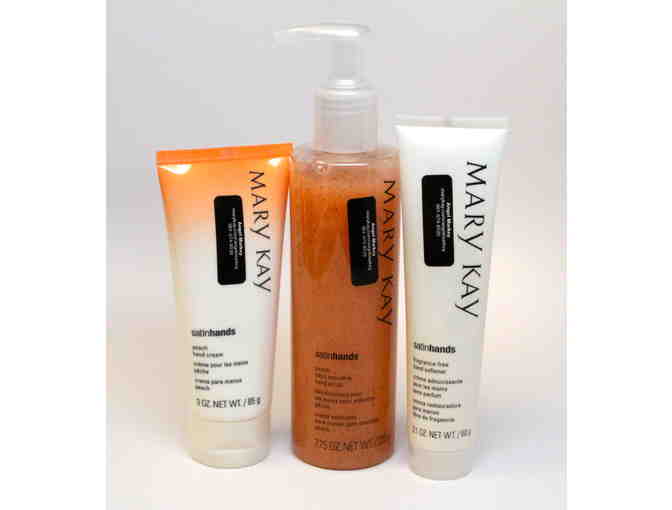 Peach Satin Hands® Pampering Set is an easy, three-step system that helps keep hands feeling renewed, soothed and pampered. Set includes: Hand Softener, Hand Scrub, Hand Cream