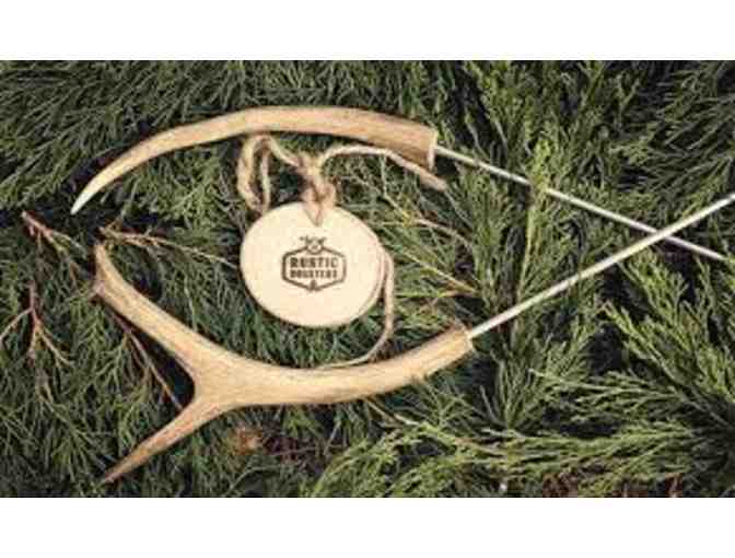 Gift Certificate for: 1 set of four Timer Roasters, 1 set of 4 Timber Coasters, 1 set of Color changing Fire pine cones. All individually crafted right here in Park City. These one of a kind offerings are sure to please everyone's inner s'mores lover - and find a permanent sport near the fireplace or fire pit. The roasters feature native branches, lovingly collected, stained and finished. The coasters are from fallen timbers high in the mountains of Utah. The fire pine cones will add a touch of color to your next fire.
