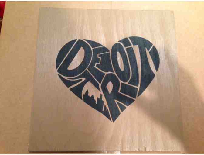 This item includes a wood based 9 1/2" X 9 1/2" heart with the words Detroit inside.  Very unique!