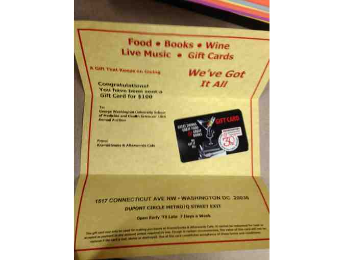 Spend $100 at Kramerbooks & Afterwords Cafe. This value is good for use at the Cafe, bar, and store.