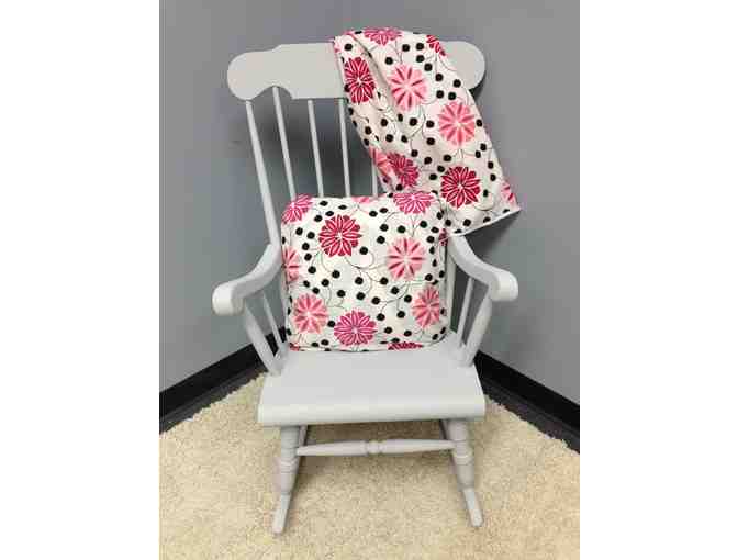 Wooden rocker hand painted in Annie Sloan Paris grey with coordinating pillow