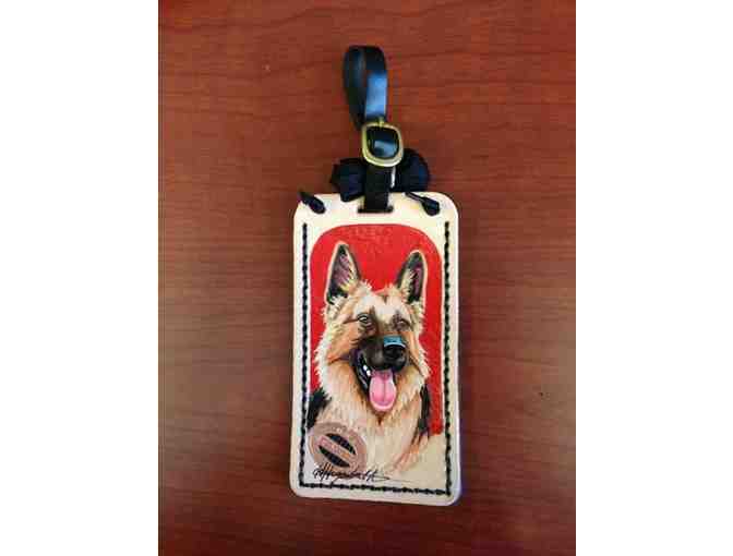 Hand Tooled and Dyed Leather Tag Featuring a German Sheperd