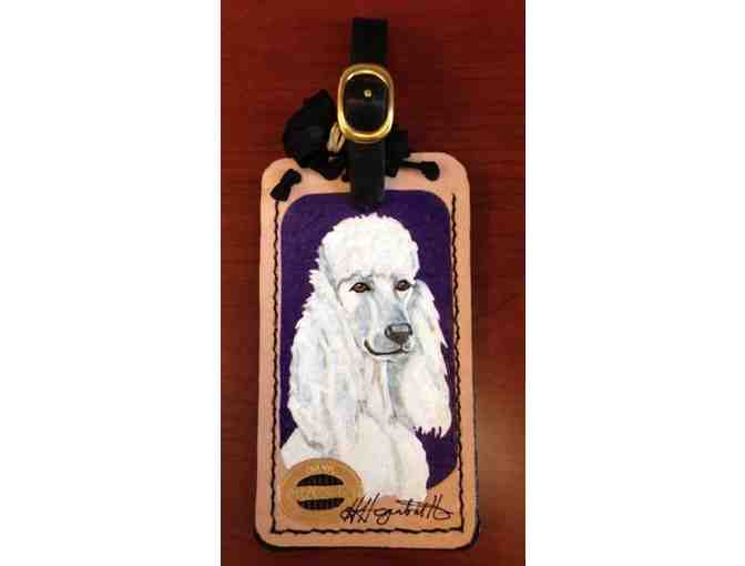 This one-of-a-kind luggage tag features a stately white Standard Poodle.