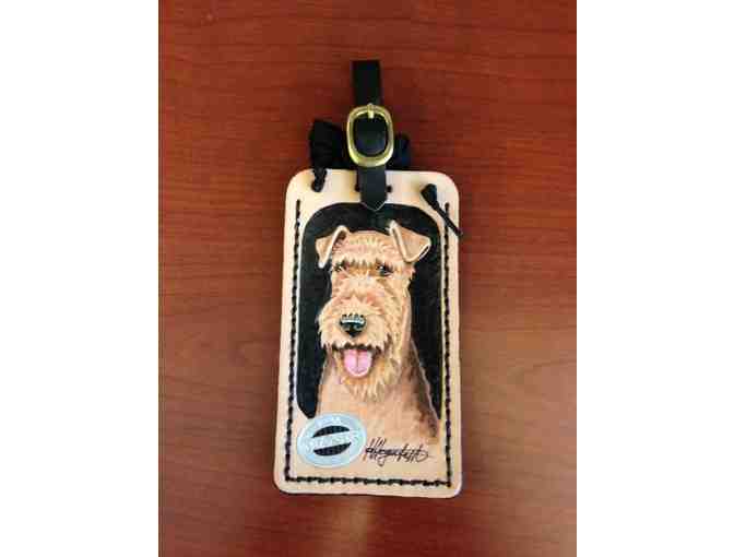 Hand Tooled and Dyed Leather Tag Featuring an Airedale Terrier