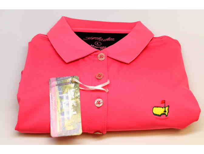 Tee off with this pretty pink four button, ladies large, MastersTech golf shirt. Moisture wicking and SPF 50 fabric makes this a great shirt for sunny days.