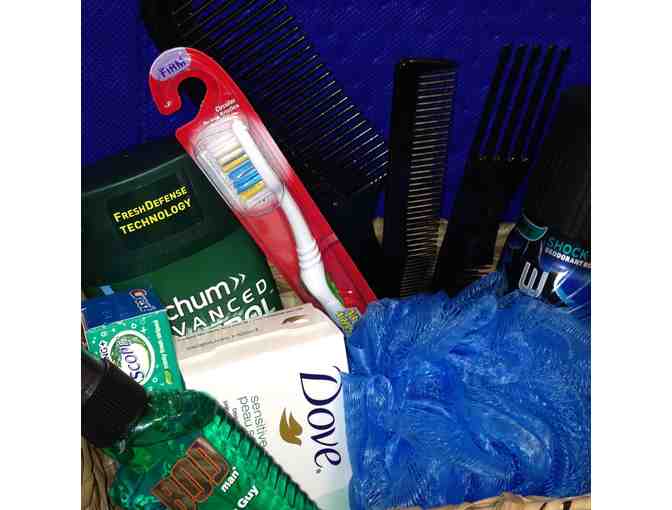Gift basket for men that can be used at the gym, school or just extras at home. Gift basket for men that can be used at the gym, school or just extras at home. The hygiene kit consists of: Axe twist fragrance, Axe PHOENIX deodorant body spray, BOD man Really Ripped Abs, Mitchum Advanced control Artic Rush Deodorant, Bar of Dove sensitive skin soap, Colgate Toothbrush, Crest toothpaste, scrub, and