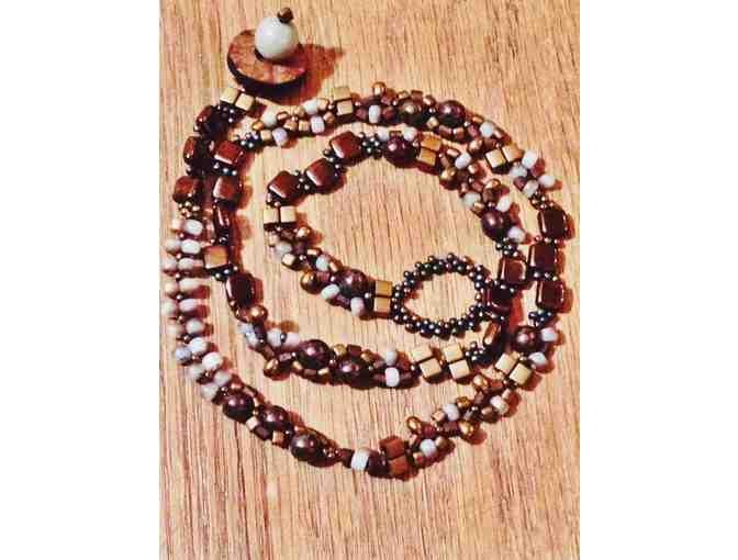 This bracelet is versatile!! It is both a bracelet and a necklace -- it wraps 3 times around the wrist or it can be worn as a necklace.