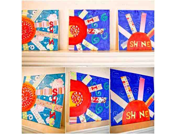 2nd grade shines in all that they do. Our second graders created individual works of art on canvas depicting the sun and sky with mixed media elements. These 12x12 canvases will be a treasure to behold for many years to come. $40 per canvas.