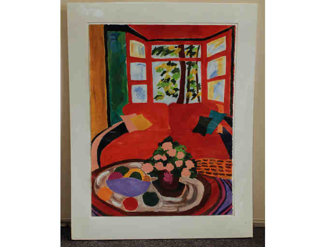Vibrant and intense color, a hallmark of Ms. Lipman's work, is probably the most obvious experience of this original painting. "Red Sofa Open Window" is 30" X 22," with a matted size of 37" X 29," and is unframed.