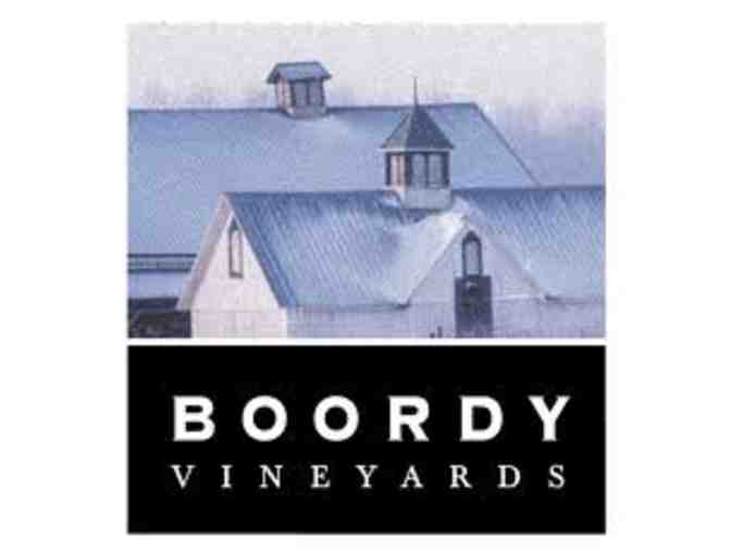 A basket containing a bottle of delicious dry, white wine made by Boordy Vineyards, two wine glasses, a bottle stopper, a corkscrew, and four tickets to one of the 2014 Summer evening concerts of your choice at Boordy Vineyards.