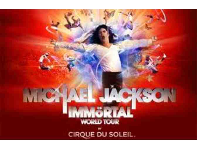 You are bidding on two tickets to "Michael Jackson--The Immortal World Tour" by Cirque Du Soleil. Tickets are for Tuesday, March 18, 2014. A riveting fusion of visuals, dance, music, and fantasy that immerses audiences in Michael's creative world. The show captures the essence, soul, and inspiration of the King of Pop, celebrating a legacy that continues to transcend generations.