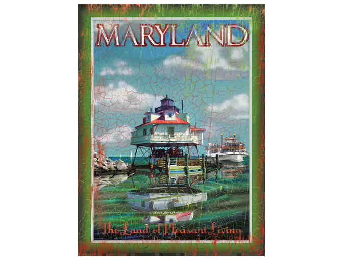 You are bidding on "Maryland, The Land of Pleasant Living" from award-winning Maryland artist Patrick Reid O'Brien. This image, on gallery-wrapped canvas, measures 18" X 24." His "My Town Art" collection captures family memories, pastimes, pets, and passion for life. With over 2400 images, there is coastal art, dogs, horses, landmarks, and icons of favorite towns. Mr. O'Brien's work can be seen in gift shops and stores across the country and a large selection in his new gallery at My Town Art in Ruxton Station.