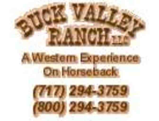 Two people are invited to stay in a private room with shared bath at the Buck Valley Ranch. The property is located two hours northwest of Baltimore in the Appalachian Mountains of South Central Pennsylvania. Your visit includes a farm-fresh breakfast with eggs from Buck Valley Ranch and milk from Gertie, the neighbor's cow, and a 90-minute trail-ride on horseback to bring out your inner cowboy or cowgirl.