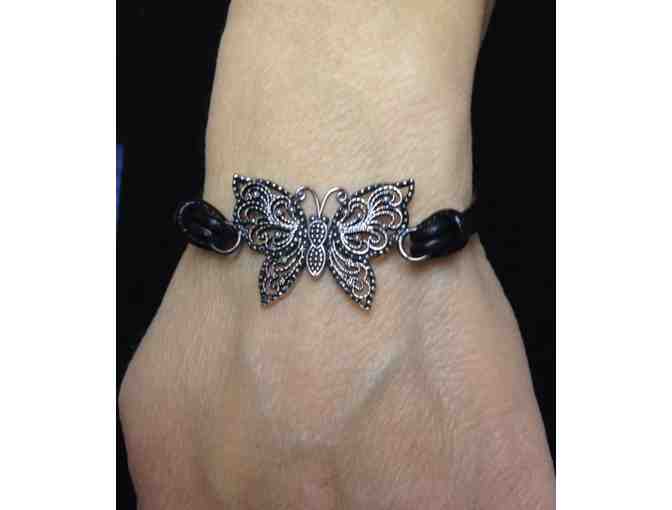 Jewelry: Sterling Silver Butterfly Bracelet with leather band