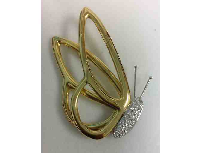 Body of Butterfly in platinum with 18K yellow gold wings set in pave 0.69, high quality diamond carats.