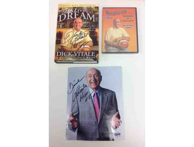 Autographed Dick Vitale 8"x10" Photo. Autographed "Dick Vitale Living a Dream" Hardcover Book. DVD - Vitale Formula for Success.