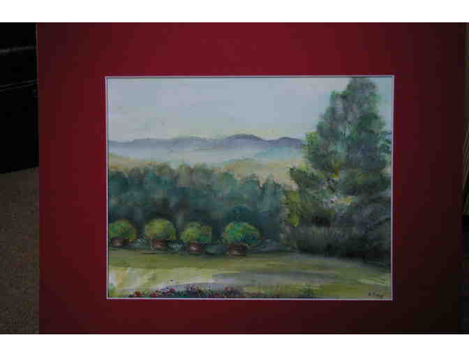Watercolor measures 11" x 14" and with matting is 16" x 20".