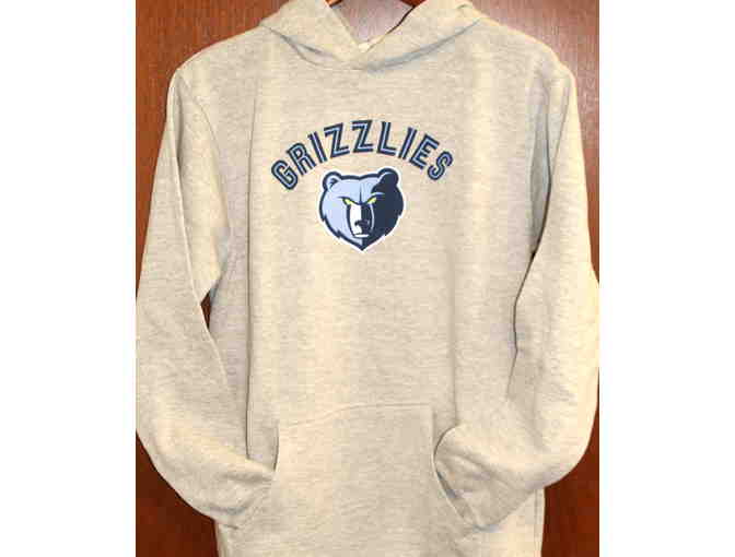 This is a light grey Memphis Sweatshirt hoodie. It is made by NBA with soft fleece lining and a front pouch. With this great hoodie you can stay warm and show off you team spirit. Size: Youth XL