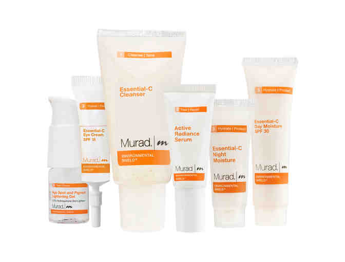 This basket includes: Essential C Cleanser, Essential C Daily Renewal Complex, Rapid Age Spot and Pigment Lightening Serum, Essential C Day Moisture Broad Spectrum SPF 30, Essential C Night Moisture, Essential C Eye Cream Broad Spectrum SPF 15, and Intensive C Radiance Peel