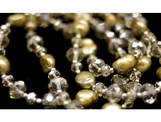 This 48" Austrian topaz color faceted cut crystal necklace with genuine champagne color fresh water pearls will be the envy of everyone who sees it.