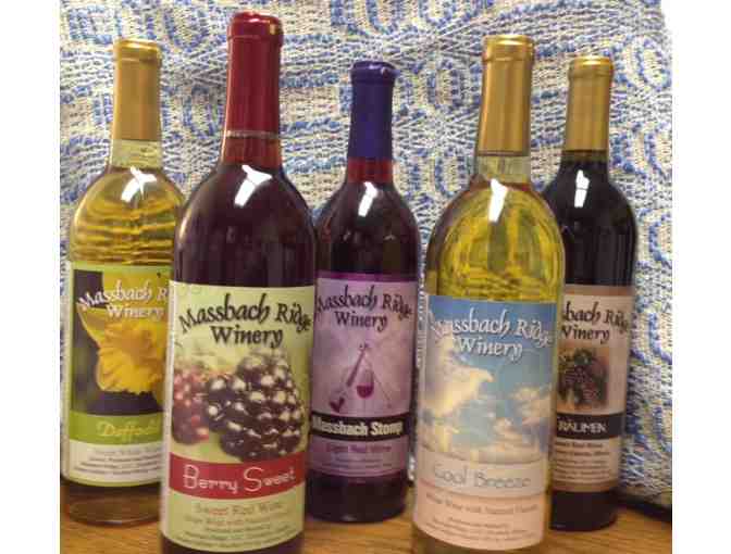 5 assorted red and white wines from 2013 Illinois Grape Growers and Vintners Association Grape Growers of the Year, Massbach Ridge Winery, Jo Daviess County, Illinois. .
