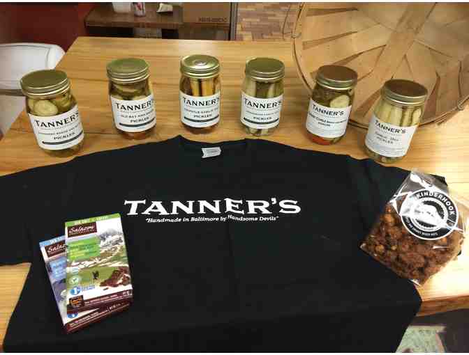 ATTENTION: Revised Description. Assortment of shelf-stable jars of pickles with amazing flavors including the limited-run Ghost Chili pickles. Winner will also receive a tee shirt (size M), Kinderhook spiced nuts, Salazon chocolate, and a $15 gift certificate for any seasonal and/or refrigerated pickles. Pickle information is posted regularly on Tanner's Facebook page. Visit their new pickle shop at 2724 Remington Ave.