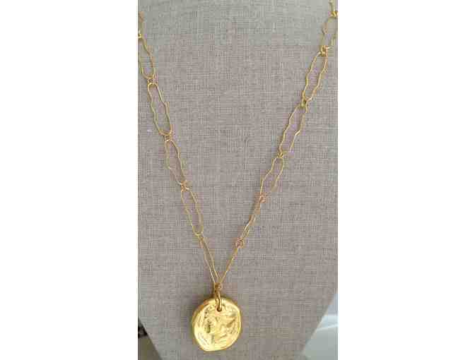A classic gold vermeil necklace with 18" chain and Alexander The Great Roman coin. A stunning piece by artisan Lyn Frankel.
