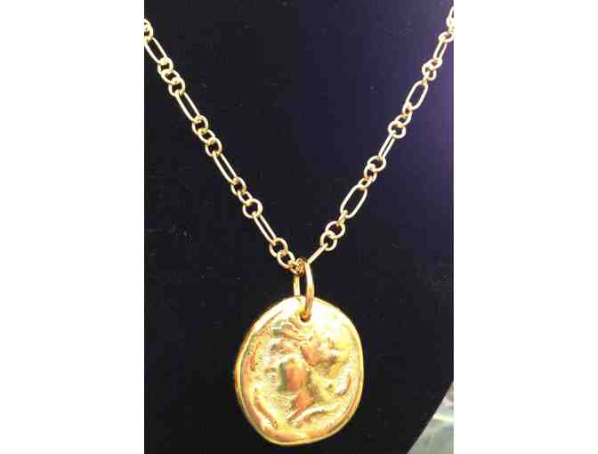 A classic gold vermeil necklace with 18" link chain and Alexander The Great Roman coin. A stunning piece by artisan Lyn Frankel.