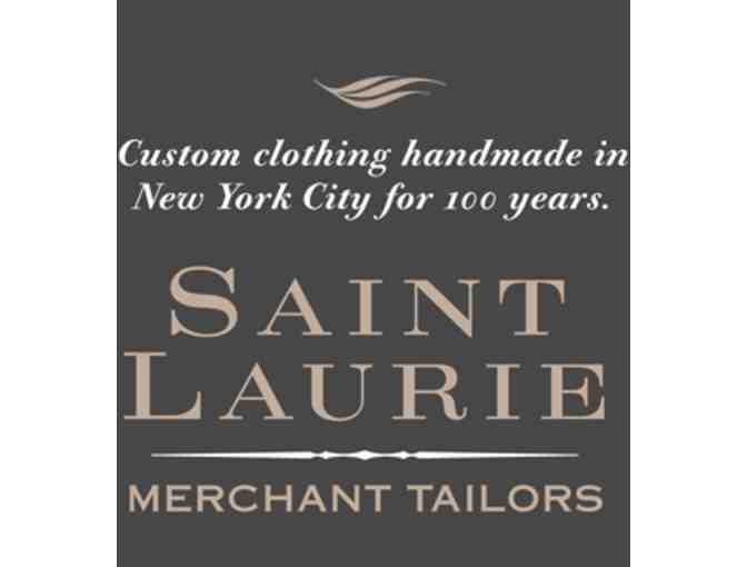 A custom made button down dress shirt by Saint Laurie, who has provided handmade clothing to New York City for more than 100 years and provided costumes for the hit HBO TV series Boardwalk Empire and Broadway musical Jersey Boys. Each shirt is handmade, with single needle stitching, mother of pearl buttons, and Swiss and Italian fabrics.