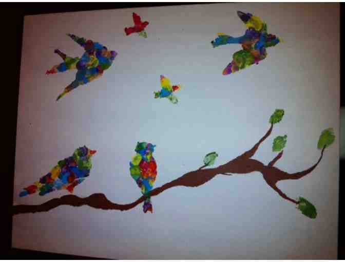 Beautiful and creative original artwork donated by the students in Ms. Bucasas' 1st grade classroom. All students participated to create the different colorful birds.