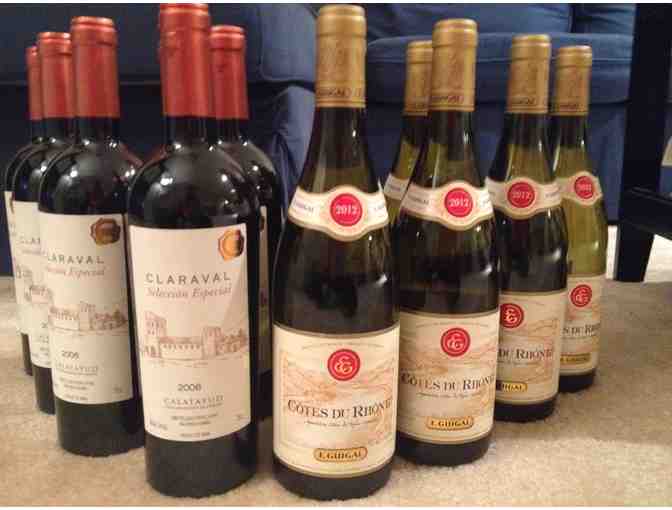This case of wine contains six bottles of a 2006 Blend from Calatayud in northern Spain. It is a limited edition special wine maker's blend, described as medium bodied and earthy. The makers recommend pairing it with tapas or pasta. It also contains six bottles of a 2012 Cotes Du Rhone from the Rhone valley in central France. Reviewers describe it as fruity and dry and say it works well with fish and asian cuisine. Reviewed by one of the foremost wine critics in the world Robert Parker, the Spanish Calatayud special blend received 91 points and the white Cote Du Rhone 89 points!