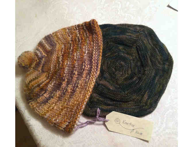 Two fabulous handknit hats created by Youth Theatre Northwest parent and designer, Kate Rosenbaum. Made of natural fibers: wool, silk, and alpaca.