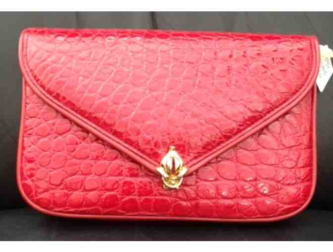 Flame Red Alligator Clutch and Scarf