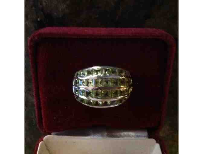 Gorgeous large ring with 4 rows of stones. Unique ring for your favorite August-born sweetheart! Size 8.