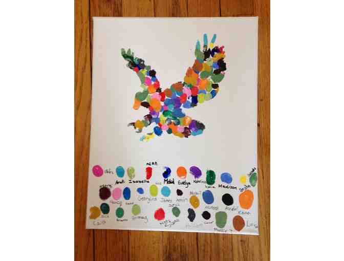Soaring - Beautiful original thumbprint artwork from the children of Ms. Klusken's 4th grade class - Room 207. All students participated to create our Eagle Mascot. Each child had a separate color for their thumbprints and signed their names at the bottom.