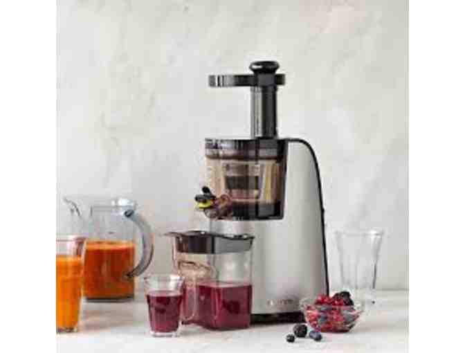 Keep your New Year's Resolution for healthy eating with the Hurom Premium Slow Juicer and Smoothie Maker in Matte Stainless Steel. Includes everything you need to savor the best of healthy, whole-food juicing with a state-of-the-art machine that has an extra "smoothie" basket for creating purees and juice blends—plus a special feature for customizing the amount of pulp in your juice. Designed for top efficiency, this compact slow-masticating juicer delivers 35% more juice and maintains up to 60% more vitamins from certain fruits and vegetables.