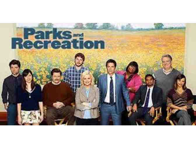 A fan's dream! Bid on a poster, script and DVDs signed by the cast of NBC's Parks and Recreation. This comedy has you laughing hysterically at the absurd antics of an Indiana town's public officials as they pursue sundry projects to make their city a better place. In fact, Amy Poehler just won a Golden Globe for best actress in Parks and Recreation. Members of the cast include: Amy Poehler, Rashida Jones, Rob Lowe, Aziz Ansari, Nick Offerman, Aubrey Plaza, Chris Pratt, Paul Schneider, Adam Scott, Jim O'Heir, and Retta.