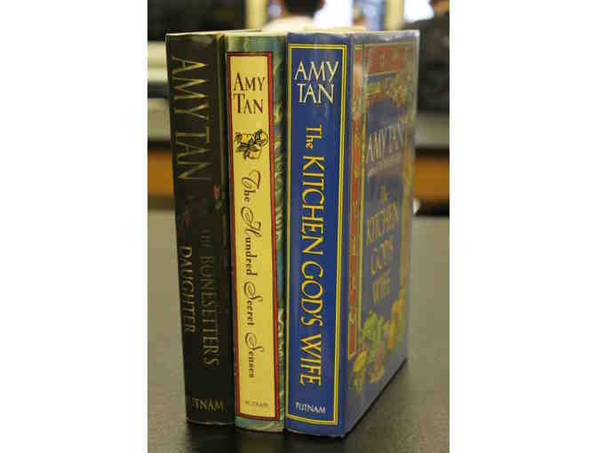 Three of her books: Kitchen God's wife, Bonesetter's Daughter, and The Hundred Secret Senses, have been autographed by the acclaimed author.