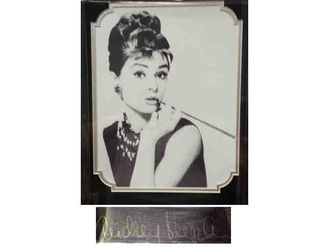Framed black and white print of Audrey Hepburn above her laser engraved signature***