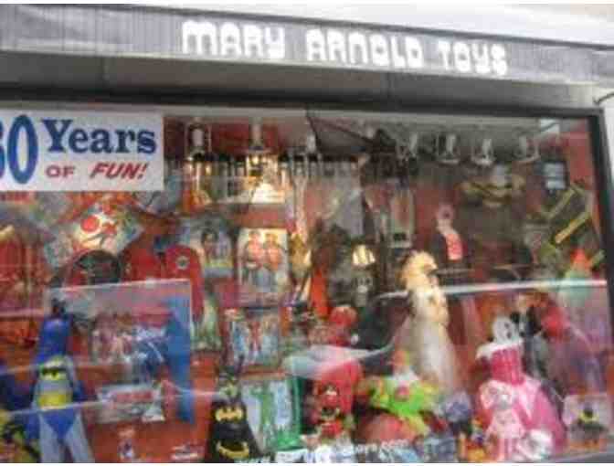 Receive a $50 gift certificate to Mary Arnold Toys-- New York's oldest continuously operating toy store, specializing in great toys that stand the test of time. Sure, the've got Rainbow looms and the latest techno-toys. But, they also carry unusual, hard-to-find playthings, like a flat-car racing set and Madame Alexander dolls. For morei information, go to: www.maryarnoldtoys.com