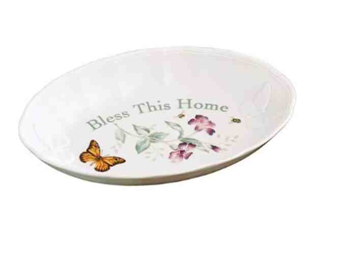There's no better place to feel sentimental than at the table with this Butterfly Meadow tray. With the words "Bless This Home" and a whimsical springtime motif, it serves as a beautiful message and housewarming gift for friends and family. From Lenox's collection of serveware and serving dishes.