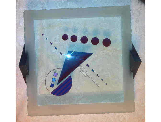 This one-of-a-kind glass art tray is beautiful and functional. The "Sushi Tray" can be used to serve cold foods, hold a collection of perfume bottles, or reside on a table as a work of sculpture. 12" square.
