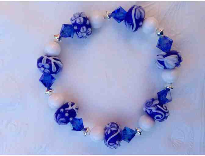 Blue, White and Sterling Silver Lampwork and Glass Bracelet