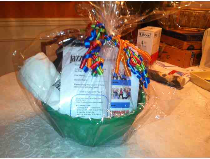 This 2-Month pass buys you unlimited Jazzercise classes for two at the Mercer Island Community Center. Basket includes the pass, a towel, workout bag, and a water bottle.