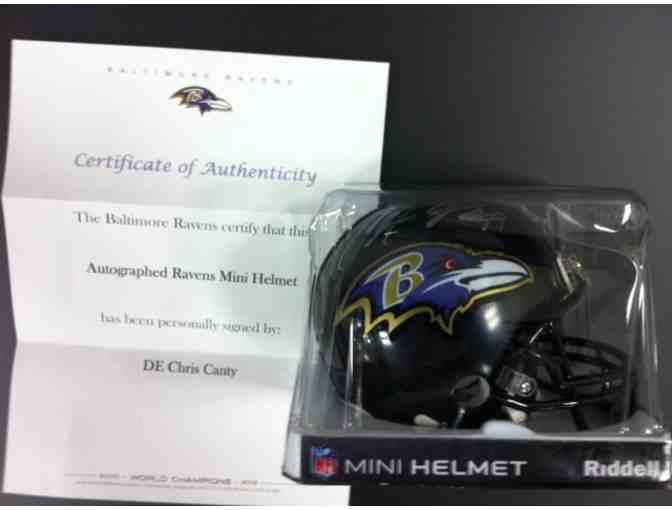 Ravens Defensive End Chris Canty Autographed Mini Helmet. Includes certificate of authenticity.