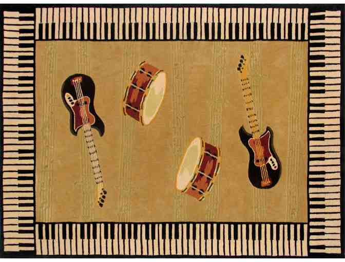 Spice up the decor in your musician's bedroom or music room with this 4x6 accent rug from Home Dynamix. Featuring a musical instrument motif, this synthetic-blend rug will look great under the drum set, or even as a wall-hanging.