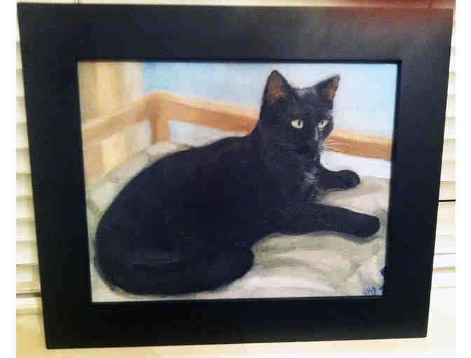 Emily will come to your house and take photos of your pet. Then she will set to work to capture the personality of your pet on canvas.