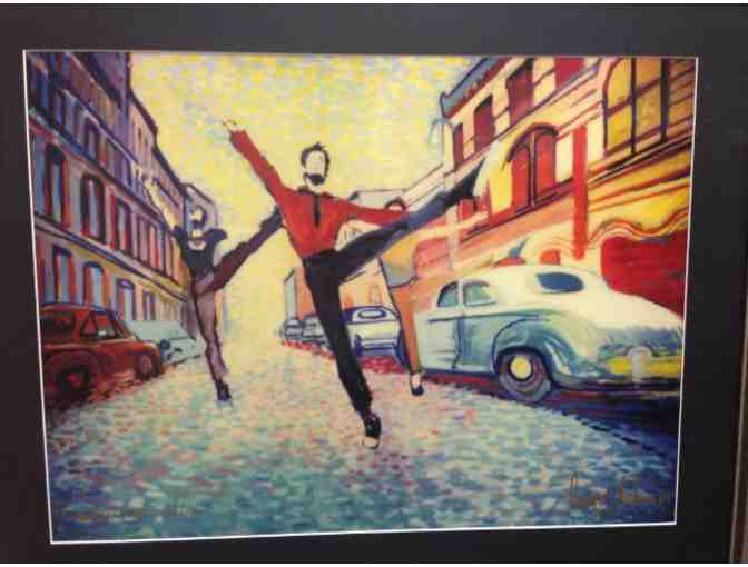 Custom Framed Limited Edition Poster from an original painting by British Painter, David Crawford, from a scene from the Oscar Winning Film “West Side Story” the 1961 American musical film directed by Robert Wise and Jerome Robbins, is signed by painter and autographed by Oscar Winner “George Chakiris”