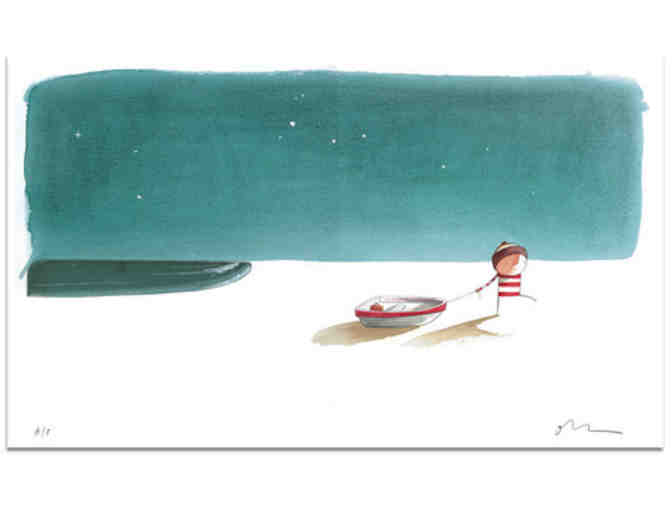 Award-winning artist, illustrator and writer Oliver Jeffers is, perhaps, best beloved for his beautiful children's books illustrations for The Incredible Book Eating Boy, The Great Paper Caper, and The Day The Crayons Quit, among others. Add some whimsy to your wall with this authentic, signed print from pages 4-5 of his 2007 book The Way Back Home.