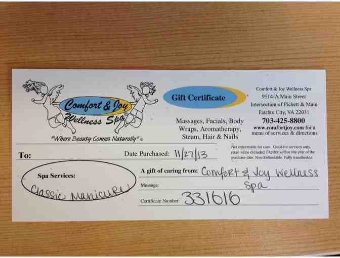 Enjoy a relaxing manicure at Comfort and Joy Wellness Spa